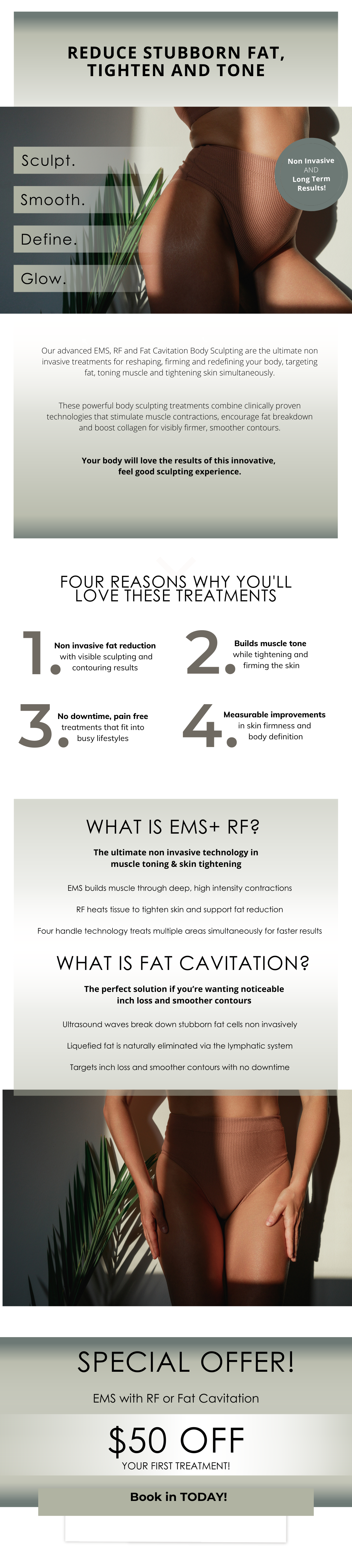Choose 2 areas to be treated at the same time: Abdomen, Arms, Thighs (inner or outer) or back of thighs.